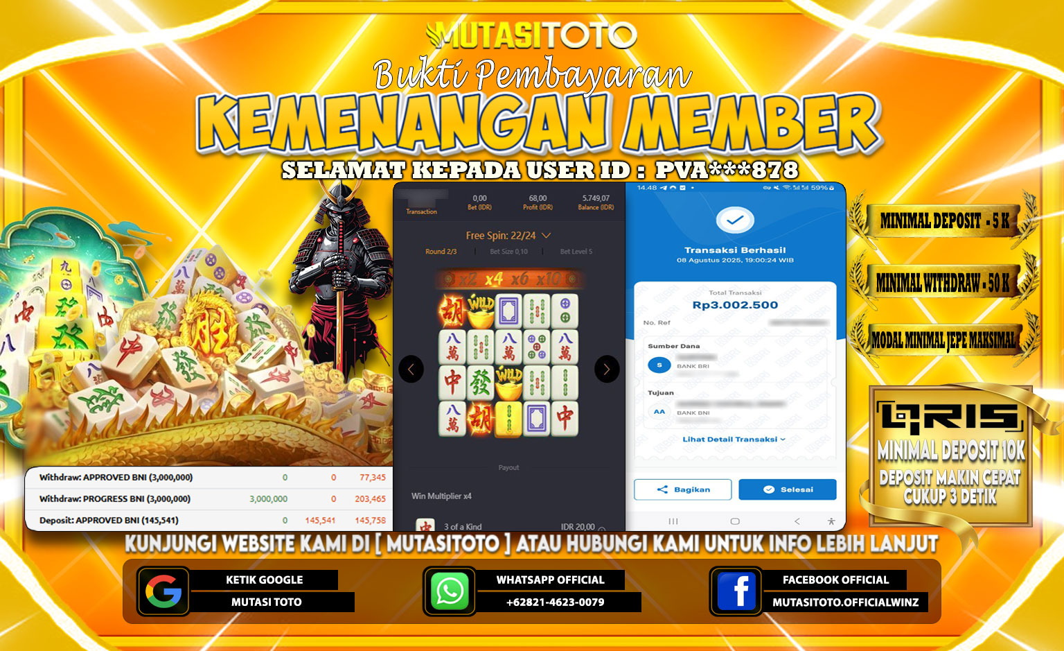 Selamat kepada member kami atas kemenangan besar nya bersama “MutasiToto”